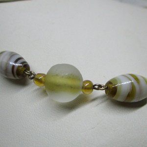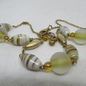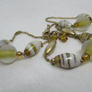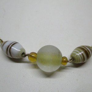 VENETIAN GLASS Necklace Swirled Venetian Glass Frosted Glass Matt Gold Tone Bead