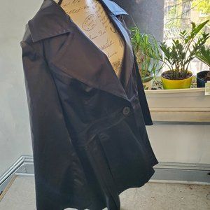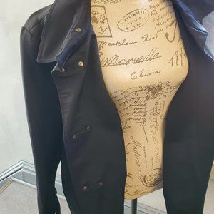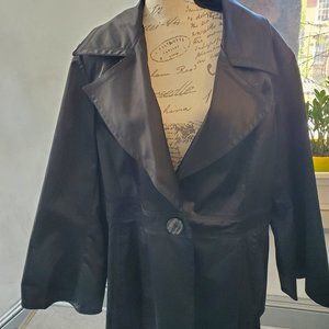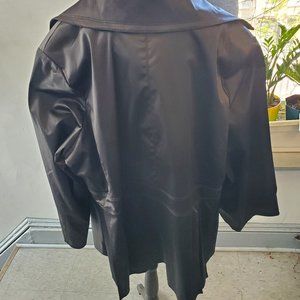Used in good condition sateen like finish size 26/28 plus jacket ,1 button missing on cuff, 2 pockets , button closure, unlined. wide sleeves