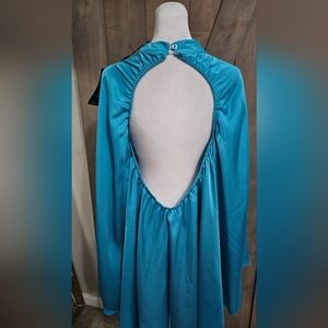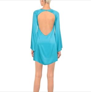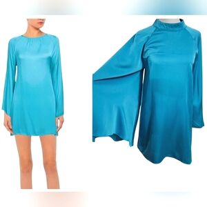 VENTI 6 ITALY Satin Bell Sleeves Mini Dress In Aqua Blue. Size Small NWT