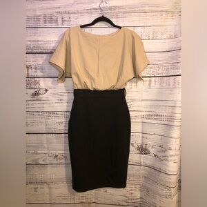 Stylish midi dress by VENUS. Features a beige top and black skirt. Perfect for any occasion.