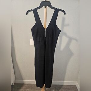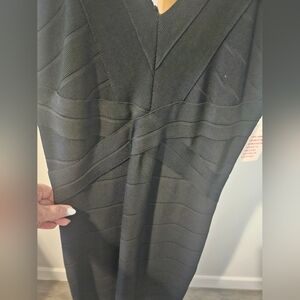 Chic black backless dress by VENUS. Features a stylish V-neck and sleek design. Perfect for evening wear.