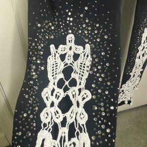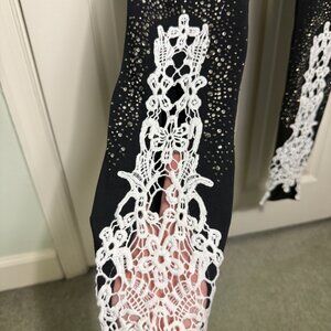 VENUS Black Embellished Lace Hem Leggings – Size XS (New with Extra Rhinestones)