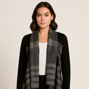 VENUS Black & Gray Plaid Open Front Waterfall Cardigan Sweater XL