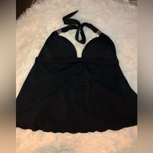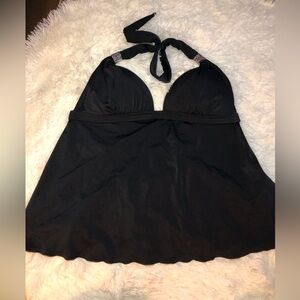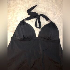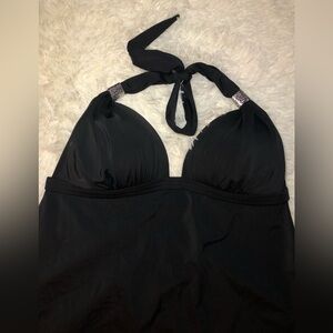 Elegant black halter bikini top. Features a stylish design. Perfect for beach days.