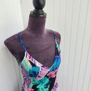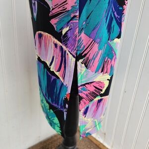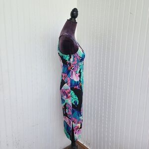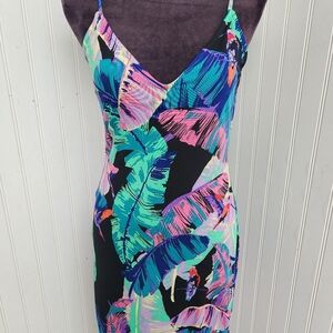 VENUS Black Multicolored Feather Print Stretchy Bodycon Dress Strappy Back Sz S