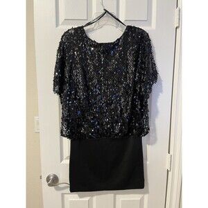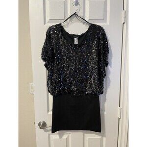 VENUS Black Sequin Blouson Holiday Pullover Mini Dress Women's Size Small