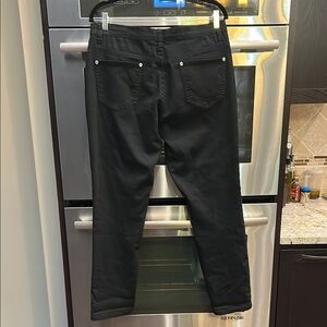 Sleek black straight leg jeans. Classic design. Perfect for any occasion.