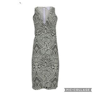 VENUS Black White V Neck Linen Blend Dress 10
