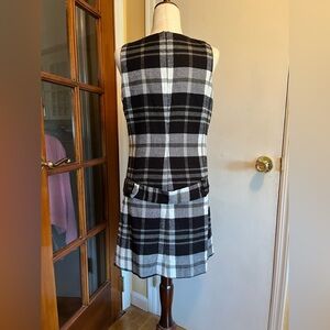 Stylish Y2K Venus mini dress with bold black and white plaid pattern. Features a sleeveless design and matching belt. The perfect dress for fall! No major flaws or signs of wear. This comes from a smoke free, pet friendly home.