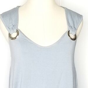 VENUS Blue Gray Fringe Hem Sleeveless Flowy Soft Spring Ringged Strap Medium Top