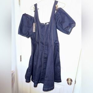 This chic blue mini dress by VENUS is ideal for casual and resort wear, showcasing a flattering fit and flare design. The short puff sleeves and cold shoulder neckline add a playful and stylish touch. Crafted for comfort and elegance, it's perfect for any laid-back occasion.