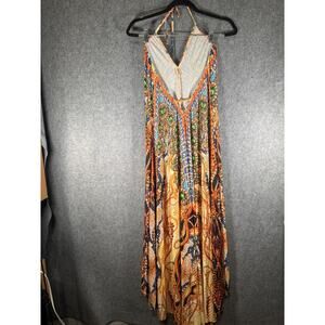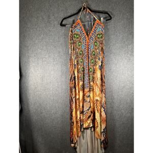VENUS Dress Women Small Orange Halter Neck Island Hi-Lo Stretch Vacation Resort