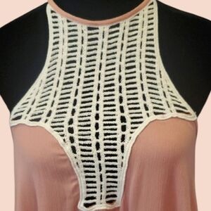 Flowing, Boho, Bohemian, Sleeveless, Mesh, Pastel, crochet, party, festival, date night, high-low, unique, casual, pretty, summer, spring, resort wear, loose, cowgirl, fun, feminine