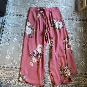 Romantic blooms cascade over soft dusty rose crepe fabric in these effortlessly chic palazzo pants. Designed with extra-wide legs for flowy movement and all-day comfort. Zips and ties at the front for a flattering fit.