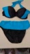 This feminine swim suit has a colorblock effect that is both contemporary and striking. Perfect for a swim party, trip to the beach, or resortwear, this modern take on the bikini will really make you stand out!