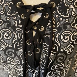 Cold Shoulder, long sleeves, lace up bodice and a really cute print.