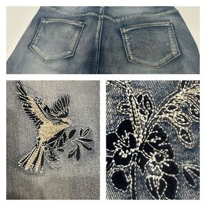 Chic light blue jeans with floral embroidery. Perfect for casual outings. Enjoy comfort and style with VENUS.