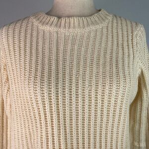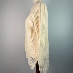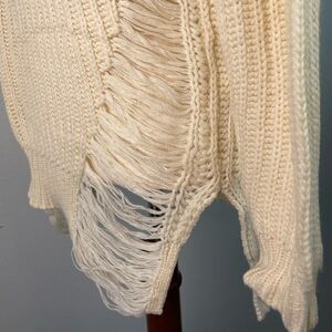 Stylish design on this crewneck sweater by Venus measuring 21 inches armpit to armpit length flat and extra long measuring 30 inches from the shoulder to the hem.