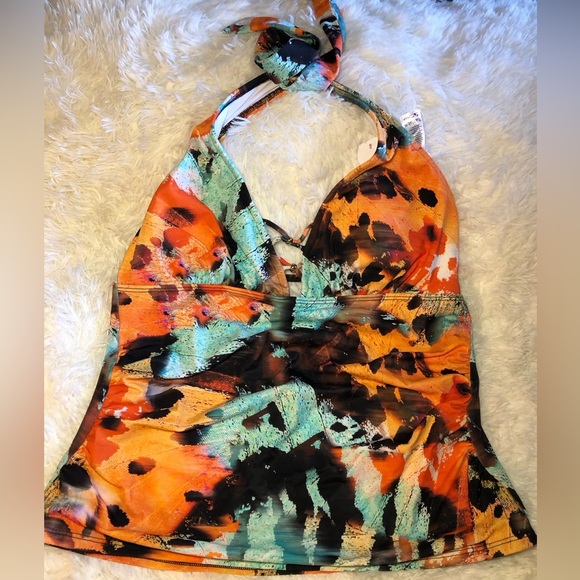 VENUS Orange and Green Halter Tie Front Tankini size 16