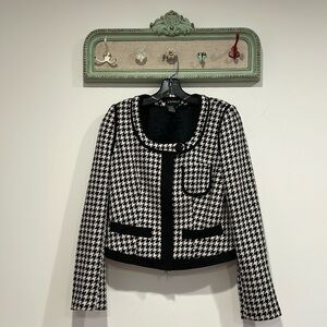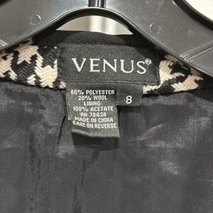 VENUS Paris Houndstooth black & white wool chic concealed zip jacket women’s 8