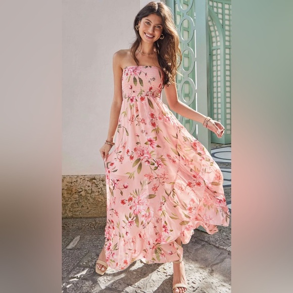 VENUS Pink A-Line Resort Maxi Split Ruffle Floral Dress NWT SIZE XL