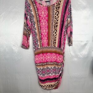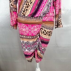 VENUS Pink and Brown Multi Patterned Bodycon Dress size Large