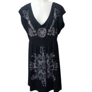 VENUS Printed Beach Dress Empire Waist Dress / Swimsuit Cover Up Black Boho XL