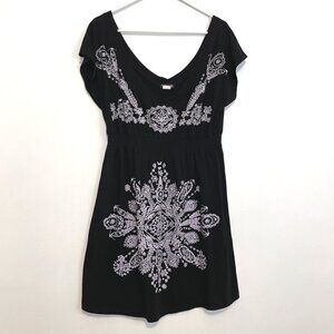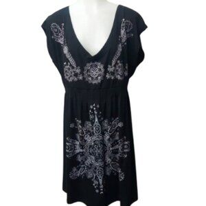 VENUS Printed Beach Dress Empire Waist Dress / Swimsuit Cover Up Black Boho XL