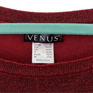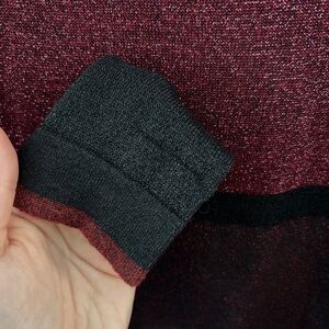 VENUS • Red & Black Crewneck Color Block Sparkly Glittery Striped Sweater Top