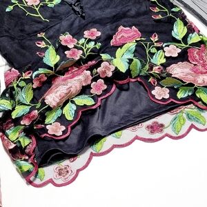 Rose Embroidered, Scalloped Edging, Elegant Sheer Blouse, Boho, Boho-Chic, Bohemian, Fairy, Fairy Tale, Hippie, Flowers, Flower Power, Floral, Flowy, Dainty, Pretty, Country Chic, Travel, Vacation, Cruise Wear. Valentine's