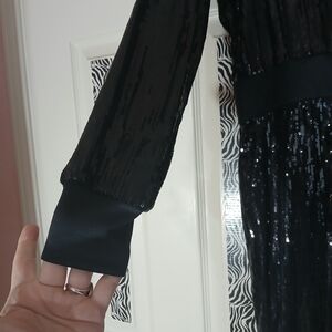 VENUS Shimmering Black Sequin Front Zipper Long Sleeve Jumpsuit Woman's Small