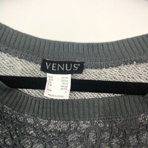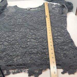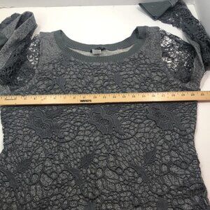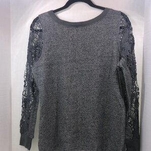 VENUS Lace Over Long sleeve Top. Gray. Size L. Lace Sleeves. Crew neck. Plain Back. Cotton/Poly Blend. Machine Wash.