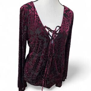 Burgundy velvet top with lace up detail and bell sleeves #gothic #whimsygoth