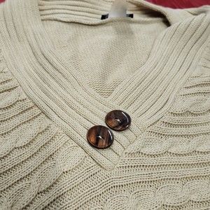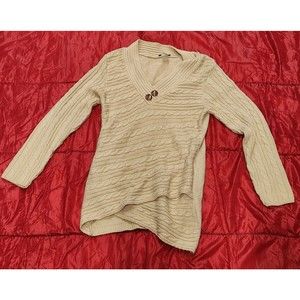 VENUS WOMENS Size Medium KNIT LONG SLEEVE BEIGE V-NECK HIGH LOW FRONT SWEATER