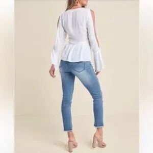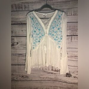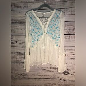 VENUS White and Teal 3/4 Sleeve Embellished Blouse sizes 8,10 and 14 NWOT