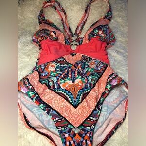 Vibrant one-piece swimsuit by LuLaRoe. Features a colorful, intricate pattern. Perfect for a stylish swim.