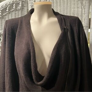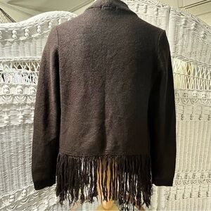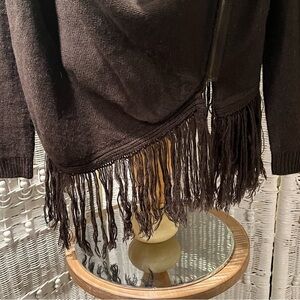 VENUS Womens S Cardigan Fringed Sweater Zip Poncho Look Brown Drop Cowl Neck BOHO HIPPIE