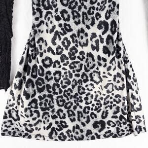 VENUS Y2K Dress S Leopard Lace Animal Print Long Sleeve Chain Tie Sheer Stretch