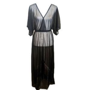VENUS black sheer polyester maxi dress swim cover up, v-neck, elastic waist Smal