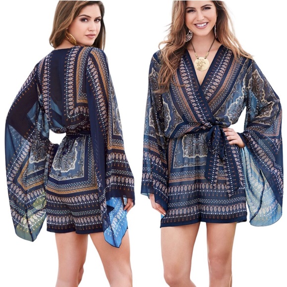 VENUS boho romper long flutter mesh sleeves women Size XS