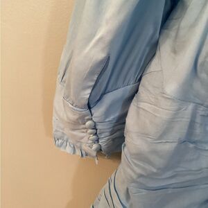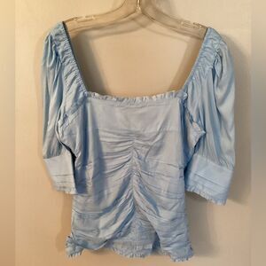 VENUS SIZE LARGE (12) LIGHT BLUE SWEETHEART NECKLINE RUCHED SIDES BLOUSE SIDE ZIP SIZE/BRAND TAG MISSING ARMPIT TO ARMPIT 18.5" LENGTH FROM SHOULDER TO HEM 25"