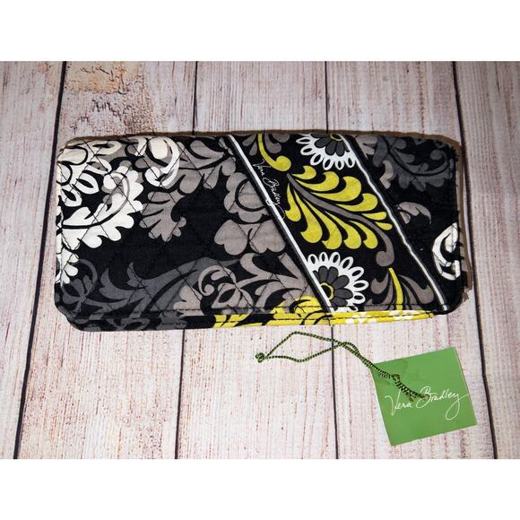 VERA BRADLEY BAROQUE Black Gray White Floral Snap Wallet Retired Pattern