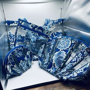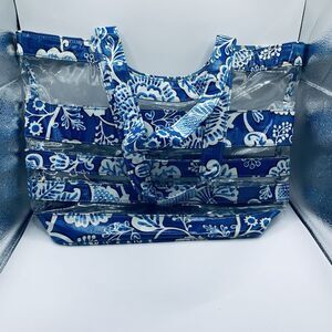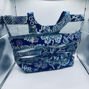 VERA BRADLEY BLUE BAYOU COASTLINE BLUE FLORAL & CLEAR PVC TOTE 4 Piece. PREOWNED BUT IN EXCELLENT CONDITION. REMOVABLE POUCH MAKES 4 PIECES. SMOKE AND PET FREE HOME.