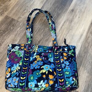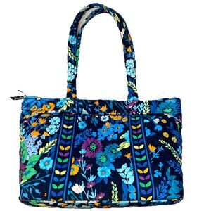 VERA BRADLEY BLUE Flowers Purse Handbag Tote Shoulder Used.