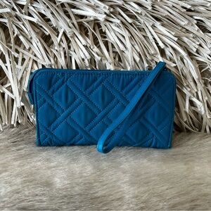 VERA BRADLEY Bahama Bay Blue Grab And Go Wristlet Microfiber Quilted Clutch