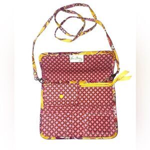Vera Bradley Bali Gold Crossbody Wallet. The strap is removable. Magnetic closure. Inside has 2 cash pockets 6 credit card slots ID slot zipper coin pocket snap button pocket.