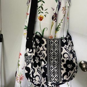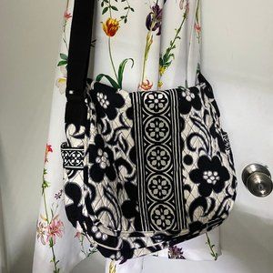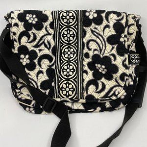 VERA BRADLEY Black & White Floral Messenger Bag