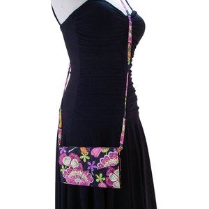 VERA BRADLEY Black/Pink Floral Quilted Cotton Crossbody Wallet Organizer - MINT