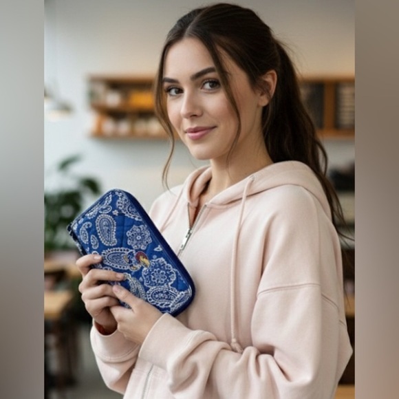 VERA BRADLEY Blue White Zip Embroidered Kansas Univ Jayhawks Wallet Wristlet