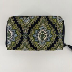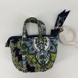 VERA BRADLEY CAMBRIDGE BLUE GREEN ZIP AROUND WALLET WRISTLET & Key Chain Coin
